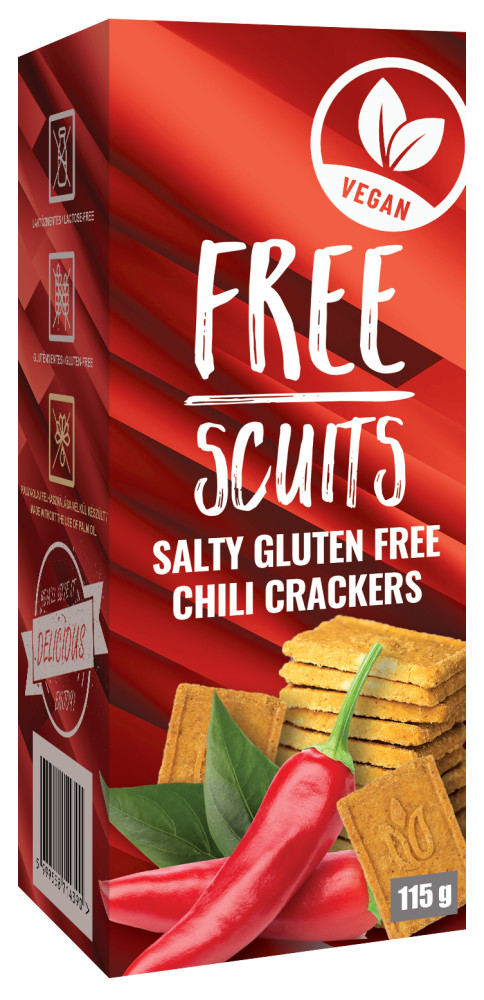 FreeScuits gluténmentes sós chilis keksz édesítőszerrel 115 g