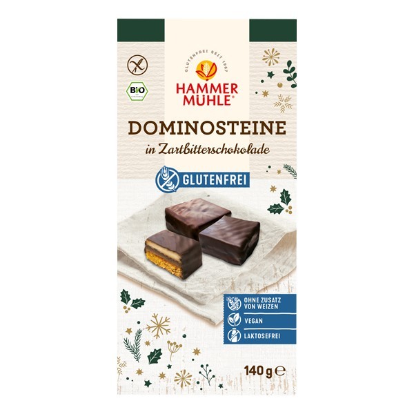 Hammermühle Bio, vegán, gluténmentes Dominó szeletek étcsokoládéban 140 g