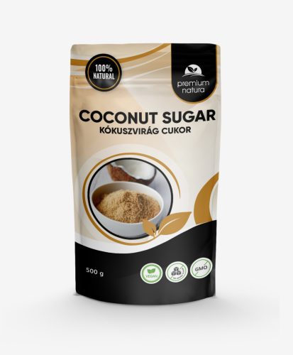 Premium natura kókuszvirágcukor értékes ásványi anyagokat: kálium, magnézium, cink, vas, és B1, B2, B3, B6 és C-vitamint tartalmaz.
